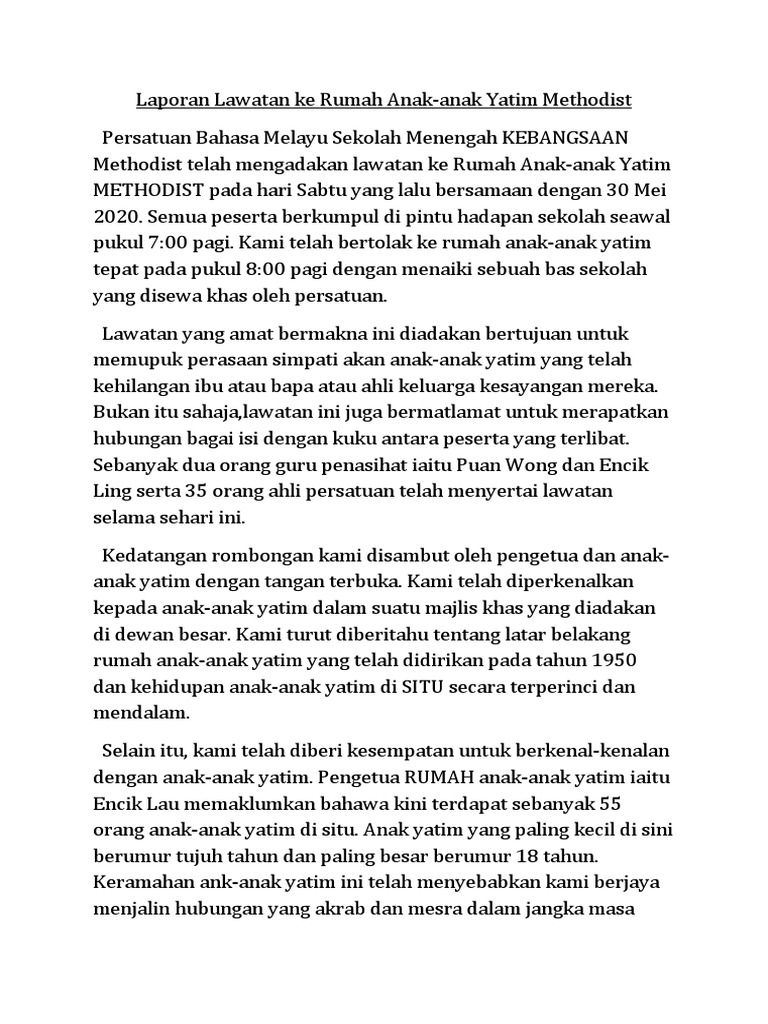 Laporan Lawatan Ke Rumah Anak Anak Yatim Methodist Pdf